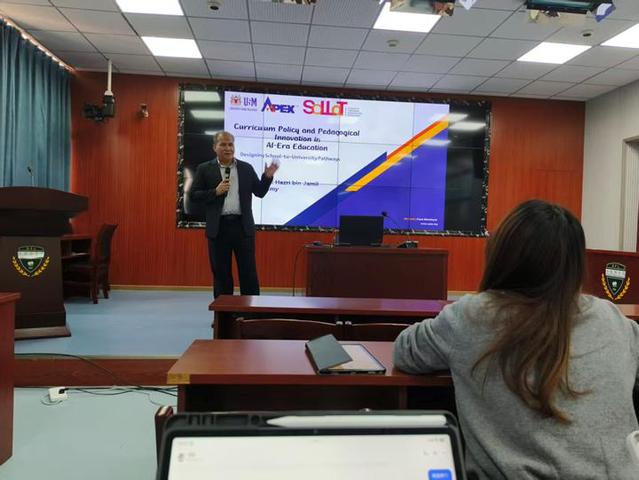 10月23日下午“在地国际化之国际文化教育系列课程·马来西亚篇”在钩深楼501开讲,由马来西亚理科大学语言、识能与翻译学院院长、博士生导师Hazri Jamil教授主讲,我校近百名师生参加。讲座聚焦AI时代教育转型,明确从内容教学到能力提升的核心方向,解析马来西亚教育改革的政策落地逻辑,通过课程与教学法创新、产业联动及全球视野培养,助力教育主动适配AI变革,为人才培养提供实践参考,切实提升学生职场竞争力与教育国际适配性。本场讲座为我校师生提供了宝贵的学术交流机会,有助于师生精准把握教育发展趋势,明确个人成长与教学实践的适配方向,助力师生对接国际教育标准,提升自身国际胜任力。