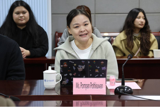 Pornpan Pothisuwan女士表示,来长江师范学院访问就像是到朋友家串门,非常亲切。她代表那空沙旺皇家大学感谢我校对交换生项目的支持和投入,高度评价我校的国际人才培养质量和服务水平,希望双方的合作能结出更加丰硕的成果。